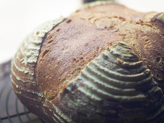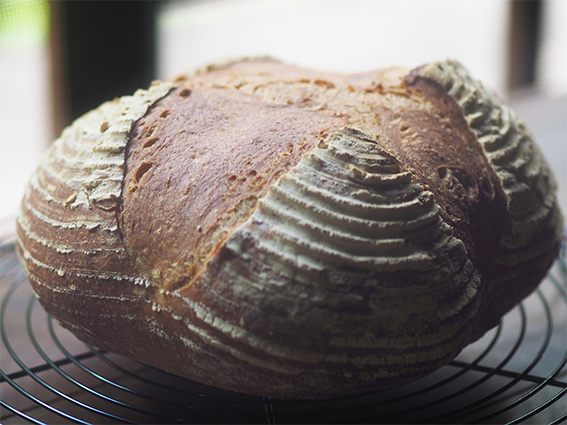 北海道産有機小麦と古代小麦(スペルト小麦)全粒粉で焼いたカンパーニュ。